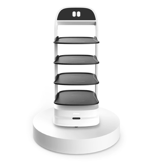 Pensado para hospitais, clínicas e edifícios corporativos, executa entregas autónomas e comunica com sistemas como elevadores e portas automáticas.